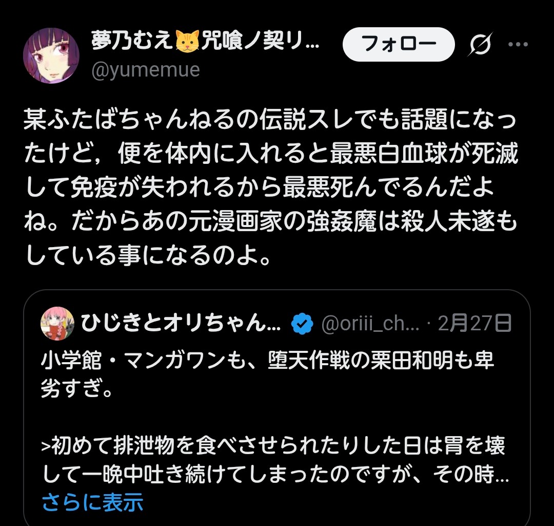 | … | 726/03/02(月)07:53:42No.1406938088+初期の頃は実の兄ともエッチしてたよな |