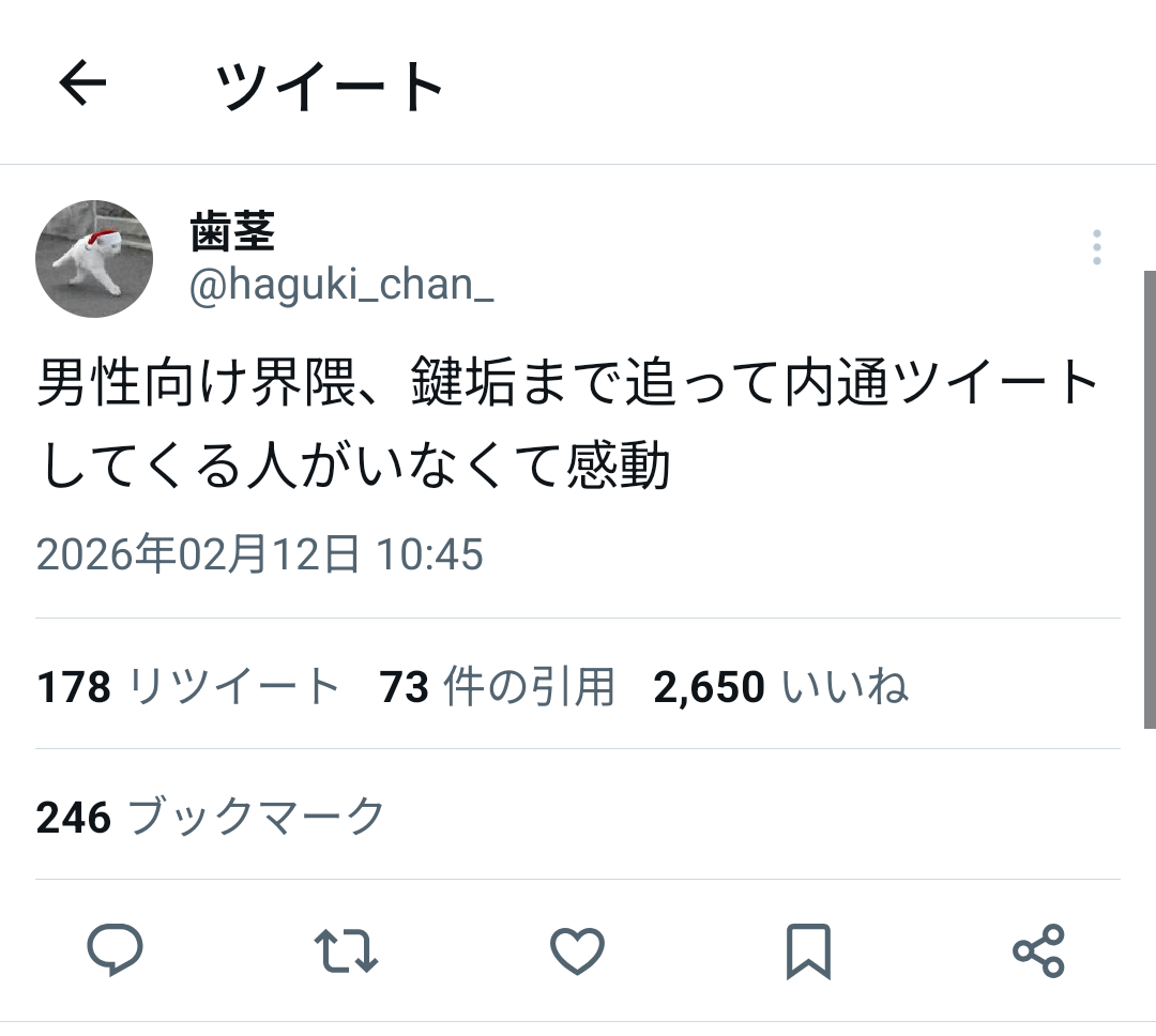 | … | 526/02/16(月)03:46:51No.1402495947そうだねx1どうせこのスレ立てたのも女「」だろ |