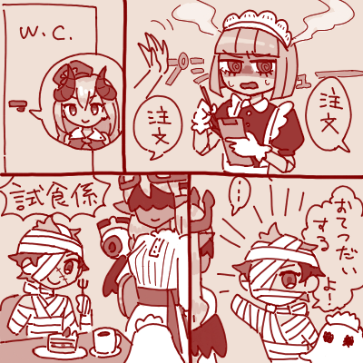 | … | 4726/01/03(土)02:38:18No.1388984527そうだねx6 1767375498367.png-(212728 B) >(混んできたカフェで複数席からの注文に混乱しはらはらと泣き出すメイドール) |