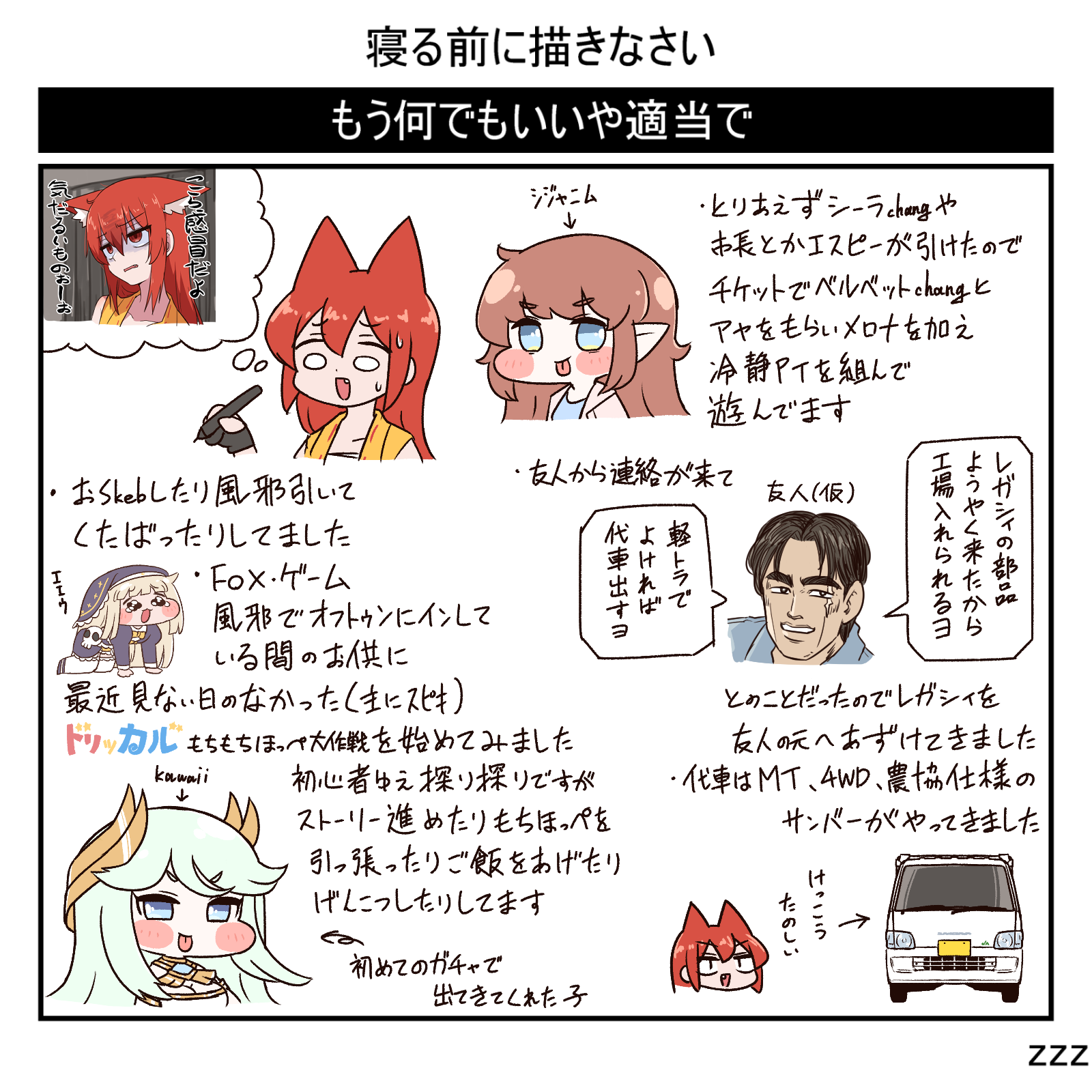お絵描きしたり風邪ひいたりトリッカルでもちほっぺと戯れたりレガシィを送り出したりしてました