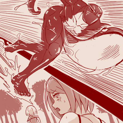 | … | 926/04/15(水)01:21:33 ID:WM663.UsNo.1420476044+緑髪は叫ぶように乞いながら腰を抜かしてへたり込み、後ずさっている。そそるものがあるがまともに動けなくなったこいつは後回しだ。まだ必死に逃げ続ける金髪の方から捕まえなければ。 |