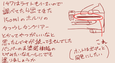 手元に前バンパー補修に使った液体コンパウンドなどが残ったりしてるのでそれと合わせていい感じにできたらいいなとくわだててます